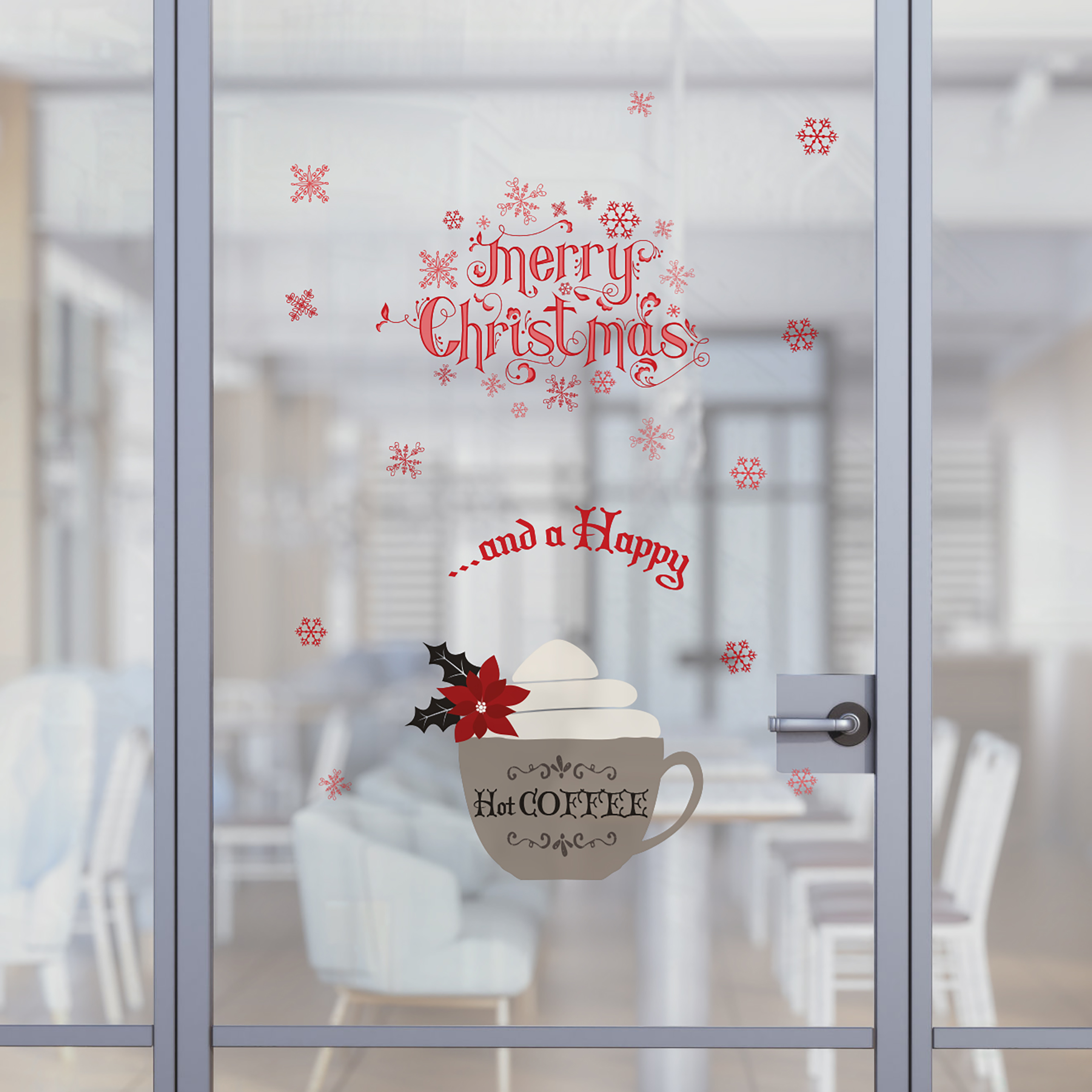 The line of festive decorations for glass and walls is intended for windows and other glass surfaces (mirrors,…) as well as installation on flat surfaces such as walls and cabinets. The decorations are double-sided, made of PVC. As a result, there are no traces of glue on your windows, installation is quick and easy, and you can move the decorations several times. Glass can be cleaned normally with glass detergent, even if decorations are placed on them.