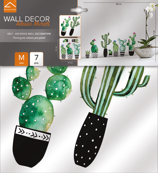 Kaktusi vodne barve M je dekorativna stenska nalepka za popestritev vaših sten. Pakiranje: 31,5x34 cm, vsebina 2 lista 31x31 cm