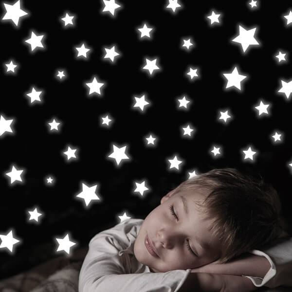 Svetleče zvezde S je otroška nalepka, ki se sveti v temi. Vsebina: 2 lista velikosti 15 x 31 cm.